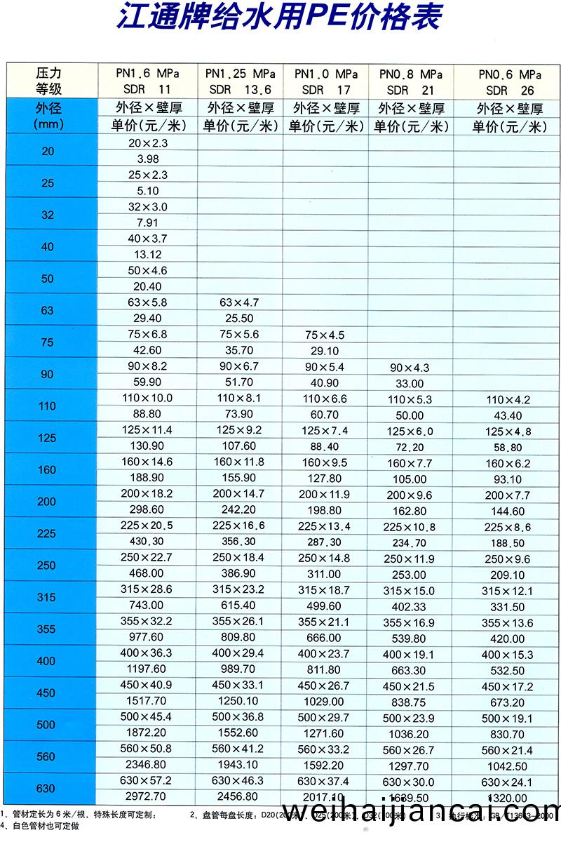 | 江(jiang)通牌(pai)給水用(yong)PE價格錶(biao) |